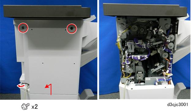 - Lift the joggger unit [B] off the shoulder screws and remove it.