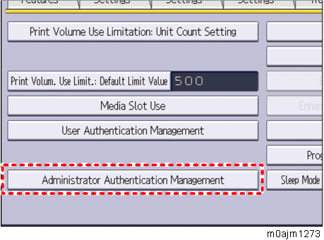 To specify administrator authentication, set "Administrator Authentication Management" to [On]. If this setting is enabled, administrators can configure only settings allocated to them.