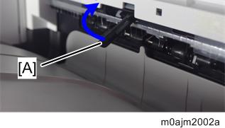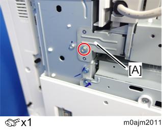 When you fully open the front cover of the internal multi-fold unit, it may interfere with the machine’s upper front cover, causing the internal multi-fold unit to become misaligned. Therefore, tighten the screw [A] with a stubby screwdriver.
