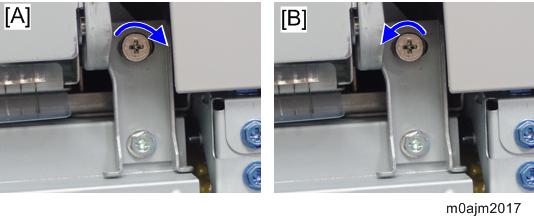 [B]: When the paper edge shifts towards the rear, turn the adjusting screw counterclockwise.