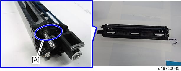 - Remove the development side seal and development case entrance seal [A] at each end.
