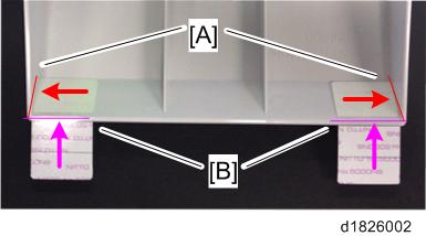 Attach the fixing sheets [B] to the auxiliary tray [A].