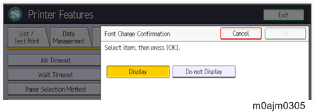 - User Tools icon on Home screen > Machine Features > Printer Features > PS Menu > Font Change Confirmation
