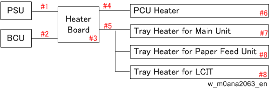 The following diagram shows the heater configuration. When installing a heater, the heater board is required.