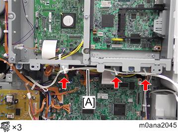 - Connect the PCU harness [A] to CN922 of the heater board and clamp the harness.